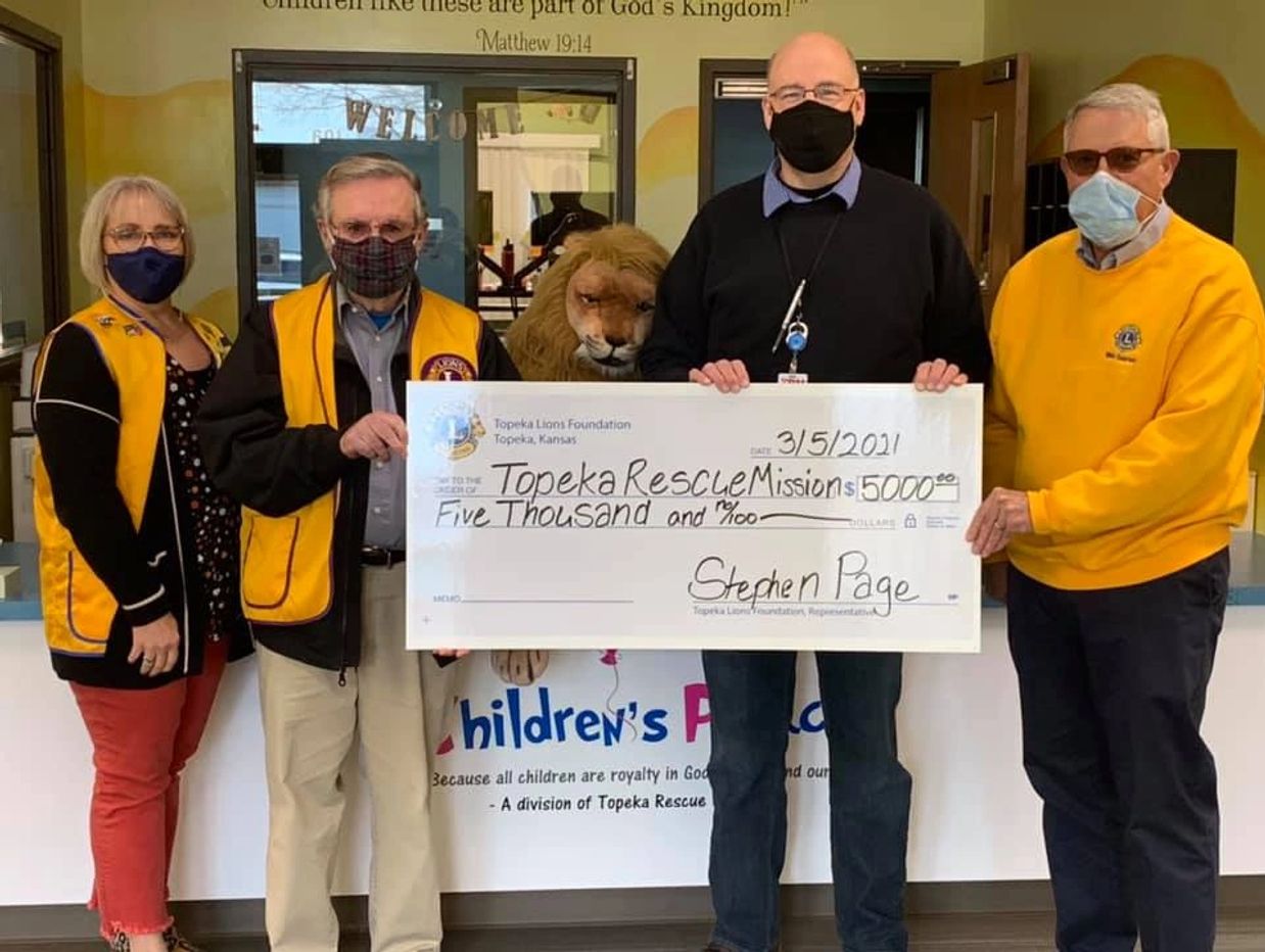 The Topeka Lions Club donated $5,000.00 to the Topeka Rescue Mission to help in feeding the homeless during the pandemic. Our Club is a hands-on service club that serves our community with kindness in many ways: